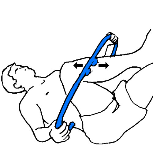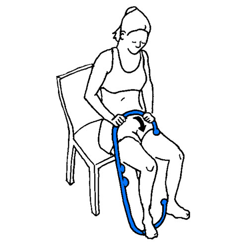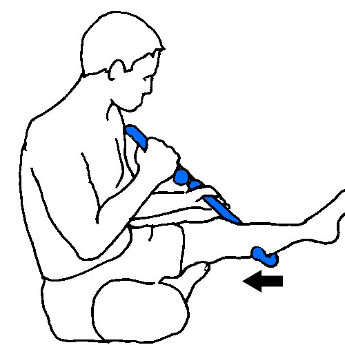 Sit with your knee extended. Sustain pressure or glide an end knob along your lower leg and foot. Enhance the technique with a small amount of lotion.
