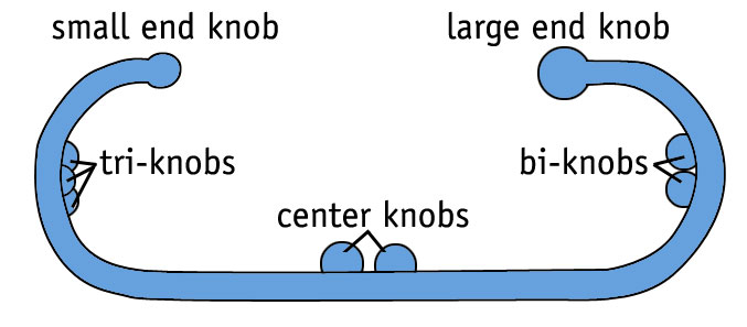 “-Tool”: This “body tool” is easy to use and effective because of it’s design. The elongated “C” shape allows you to reach and treat your whole body, from the top of your spine to the bottom of your feet. The design takes advantage of leverage – that means that you only need to exert minimal effort for maximal results! All the knobs you see were strategically designed and positioned to allow you to apply just the right amount and quality of pressure for your body. Take a moment to familiarize yourself with the simple structure of the Myotool™ before reading through the treatment section.