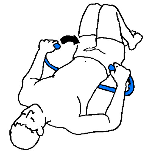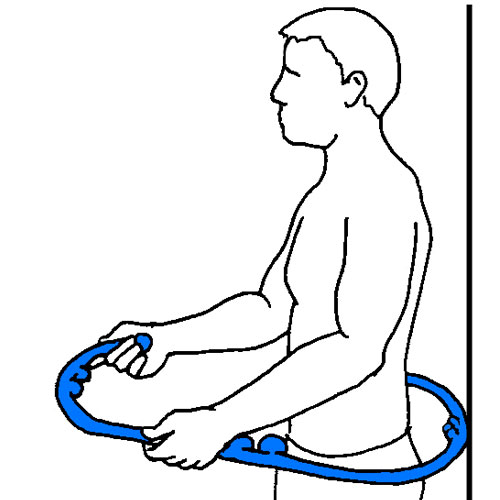 Lie on your back with the center knobs positioned along each side of your spine or both off to one side. Apply an upward or downward pumping motion with your hands near the end knobs. Also, try rocking your bent knees together side to side with the center knobs positioned under your low back.