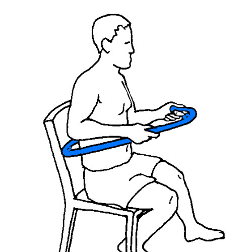 While sitting in a chair, slide an end knob around your side to the desired location on your back. Lean back into the knob or push the opposite end knob away from you for sustained pressure or rocking.